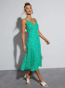 Sukienka w kolorze turkusowo-białym - ramiączka: regulowane - dekolt: V - zapięcie: suwak na plecach - dolny brzeg: 7/8 - detale: ozdobna zakładka - krój: litera A - wzór: kwiatowy