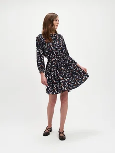 Ta urocza mini rozkloszowana sukienka z nadrukiem to doskonały wybór na wiele okazji. Wykonana w 100% z wiskozy, zapewnia komfort noszenia oraz lekkość. Sukienka charakteryzuje się delikatnym, przyciągającym wzrok wzorem, który dodaje jej wyjątkowego charakteru. Przyjemny w dotyku materiał sprawia, że sukienka jest idealna na cieplejsze dni. Doskonała zarówno na co dzień, jak i na bardziej formalne wyjścia, ta sukienka łączy w sobie styl i wygodę.