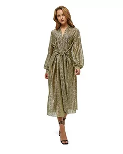 Minus Damska sukienka owijana Mollie 1, czarna ze złotem, 12, Czarny W/złoty, 38