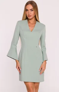 Moe sukienka z szerokimi mankietami miętowa M876 to elegancka i minimalistyczna propozycja dla kobiet ceniących klasyczne kroje i subtelne detale. Wykonana z gładkiej tkaniny o matowym wykończeniu, podkreśla sylwetkę i zapewnia wygodę noszenia na różne okazje.