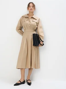 Mohito - Koszulowa sukienka midi z bawełny - beżowy
