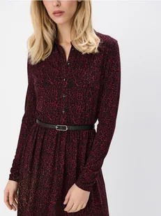 Koszulowa sukienka o długości midi z długimi rękawami i paskiem w komplecie. Uszyta w 95% z wiskozy.