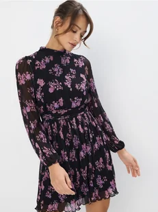 Mohito - Plisowana sukienka mini w kwiaty - czarny