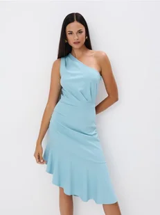 Mohito - Turkusowa sukienka midi na jedno ramię - turkusowy