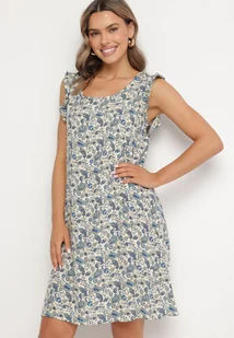 Niebieska Rozkloszowana Sukienka Bawełniana bez Rękawów w Wzór Paisley Tullio