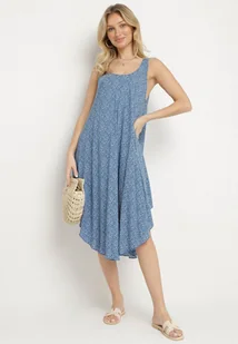 Niebieska Rozkloszowana Sukienka z Bawełny w Abstrakcyjny Wzór Ronive
