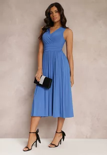 Niebieska Sukienka z Kopertowym Dekoltem i Plisowanym Dołem Anamarie