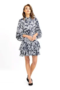 Noemi sukienka lniana z bufiastymi rękawami w kwiaty