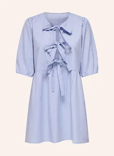 Prosty krój. Okrągły dekolt. Góra z paskami do wiązania. Rękawy 3/4. Elastyczne ściągacze na zakończeniach rękawów. Wykończenie bez podszewki. Wzór w paski. Materiał gładki w dotyku