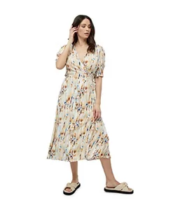 Peppercorn Damska sukienka z mahoniu MENA o średniej długości z krzywizną, szary nadruk, 22, Szary nadruk z piórami, 48-Plus