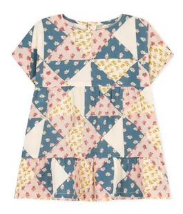 Petit Bateau Dziewczęca sukienka z krótkim rękawem, A098C, biała, Avalanche/wielokolorowa, 24 miesiące, biały Avalanche/wielokolorowy, 24 Miesiące