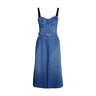 Pinko Bocce Lekka Denim Sukienka Logo Damska, Zg4_biały/Ciemny Niebieski, 40