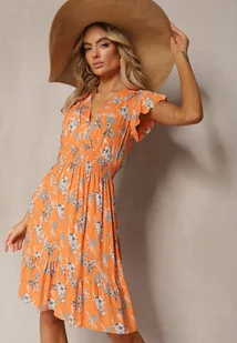 Pomarańczowa Kopertowa Sukienka Letnia z Bawełny w Kwiaty Ilivanna