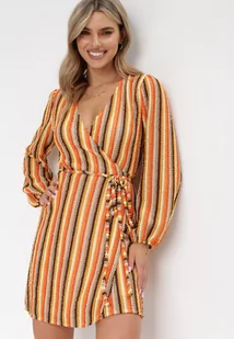 Pomarańczowa Kopertowa Sukienka z Głębokim Dekoltem i Materiałowym Paskiem Cavila