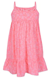 Śliczna, letnia sukienka w kolorze pomarańczowo-neonowym. Sukienka na ramiączkach, w motylki, wykończona ozdobnymi falbankami, z tyłu elastyczna gumka. Wykon...