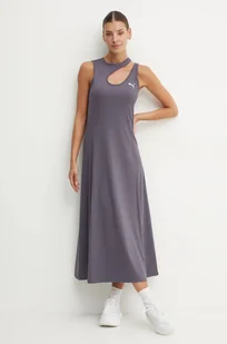 Puma sukienka kolor szary maxi rozkloszowana 627477