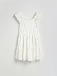 Sukienka mini o swobodnym kroju wykonana z ażurowej dzianiny.