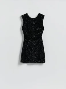 Sukienka o dopasowanym kroju, wykonana z dzianiny pokrytej cekinami.