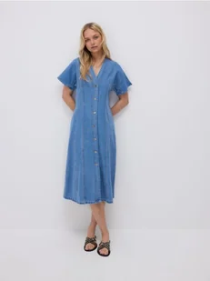 Reserved - Jeansowa sukienka midi z lyocellem - niebieski