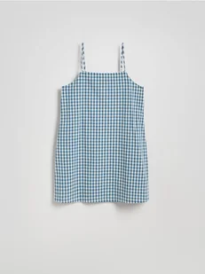 Sukienka o prostym kroju, wykonana z bawełnianej tkaniny.