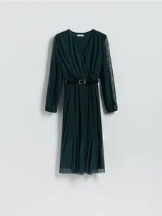 Reserved - Plisowana sukienka z paskiem - morski