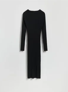 Reserved - Prążkowana sukienka z wiskozą - czarny