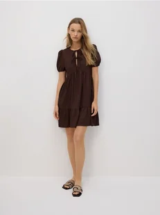 Sukienka o rozkloszowanym kroju, wykonana ze strukturalnej dzianiny.