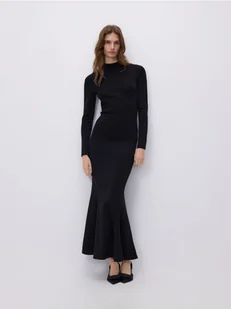 Sukienka o prostym kroju, wykonana z gładkiej dzianiny z dodatkiem bawełny i modalu.