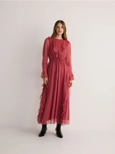 Reserved - Sukienka maxi z falbanami - brudny róż