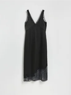 Reserved - Sukienka midi z koronką - czarny