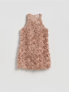 Reserved - Sukienka mini z aplikacją 3D - beżowy