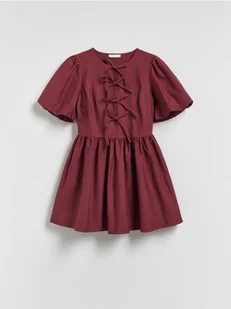 Reserved - Sukienka mini z wiązaniem - bordowy
