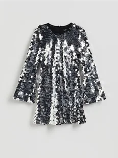 Sukienka o swobodnym fasonie, wykonana z dzianiny z cekinami.