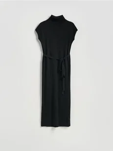 Sukienka o prostym fasonie, wykonana z dzianiny z wiskozą i domieszką wełny.