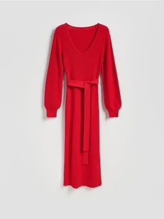 Sukienka o dopasowanym kroju, wykonana z dzianiny z wełną i bawełną.