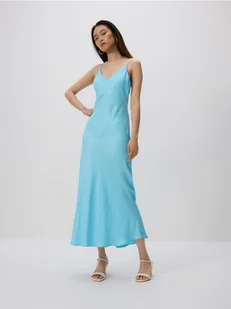 Sukienka o prostym kroju, wykonana z gładkiej tkaniny z wiskozy.