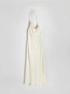 Reserved - Sukienka z asymetrycznym dekoltem - złamana biel