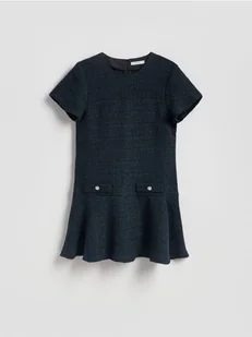 Reserved - Tweedowa sukienka mini - granatowy