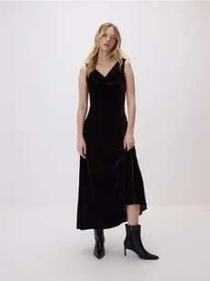 Reserved - Welurowa sukienka - ciemnobrązowy