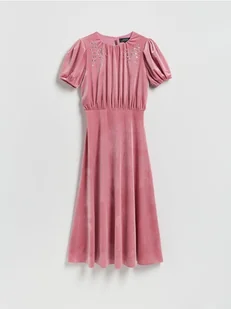 Reserved - Welurowa sukienka midi - brudny róż