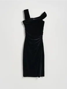 Sukienka o dopasowanym fasonie, wykonana z tkaniny.