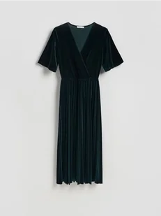 Reserved - Welurowa sukienka z plisowaniem - morski