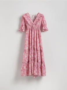 Reserved - Wzorzysta sukienka z bawełny - różowy