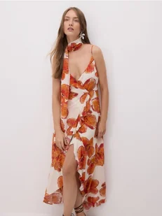 Reserved - Wzorzysta sukienka z szarfą - wielobarwny
