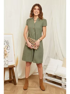 Rodier Lin Lniana sukienka w kolorze oliwkowym