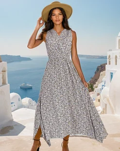 faina Damska sukienka maxi 19226421, niebieska, wielokolorowa, M, niebieski wielokolorowy, M