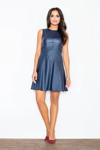 Rozkloszowana SUKIENKA z ekoskóry | bez rękawów | Granatowa S