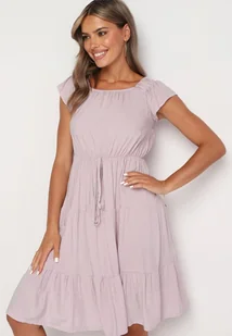 Różowa Rozkloszowana Sukienka w Hiszpańskim Stylu z Gumką w Pasie Yemvia