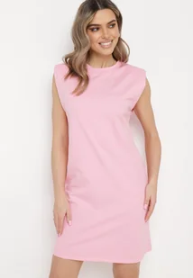 Różowa Sukienka Pudełkowa z Podkreślonymi Ramionami Mimossa