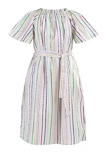 Scabbo Dziewczęca (Kids) długa sukienka z krótkim rękawem 82933781, biała, wielokolorowe paski, 128, Białe, wielokolorowe paski, 128 cm